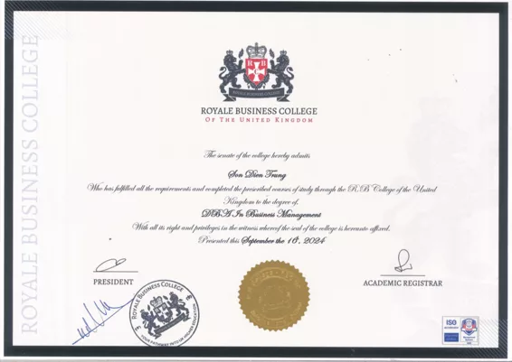 2 Bằng DBA Estiam – Pháp và RB College – Anh